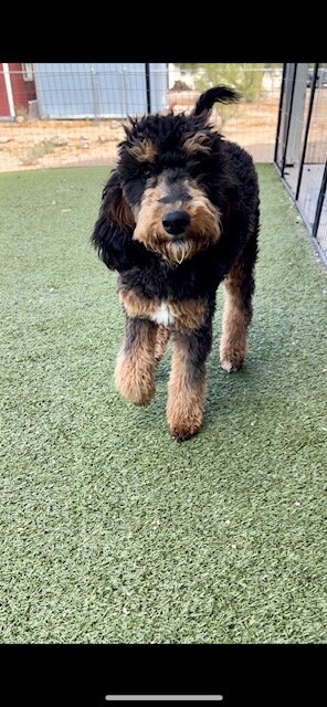 Olive is a spunky, girl full of love for her favorite humans. She is a velcro dog with all her focus on the people in her life. She is a total shadow and wants to always be near. She loves her doggie sisters and brothers and loves playing all day! She is an F1B Bernedoodle and is a grand daughter to Dezi. She has very intense copper pony’s and will pass that along to her babies. She is on the smaller side weighing in at 25lbs.